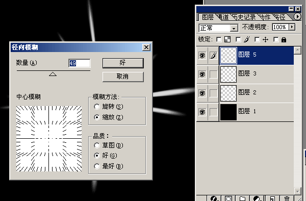 对图层 6 做镜头光晕(滤镜/渲染/镜头光晕)将中心放到图形的中心