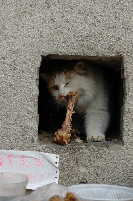 看到了一只流浪猫进餐的幸福时刻