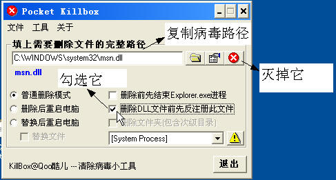杀死C:\WINDOWS\msn.exe