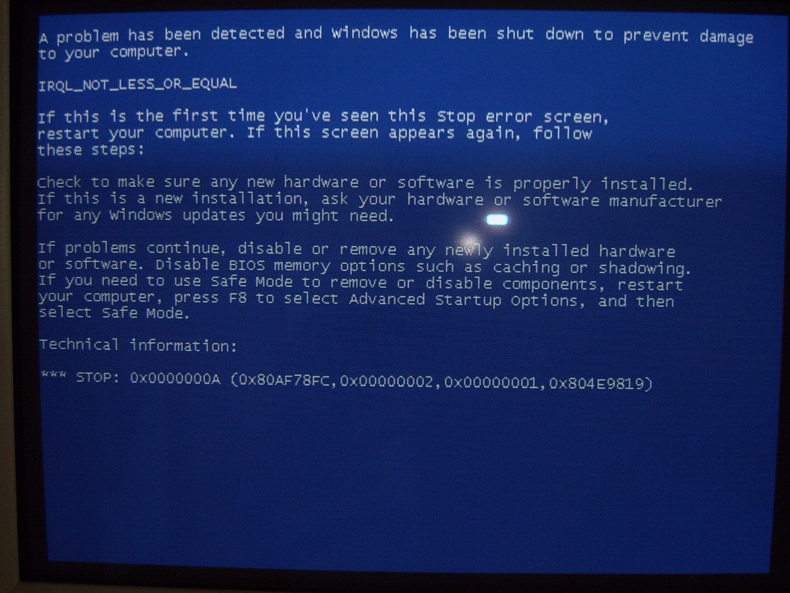 最近电脑出了问题,请大家帮忙看看:下面是我用数码对着屏幕拍下来的: