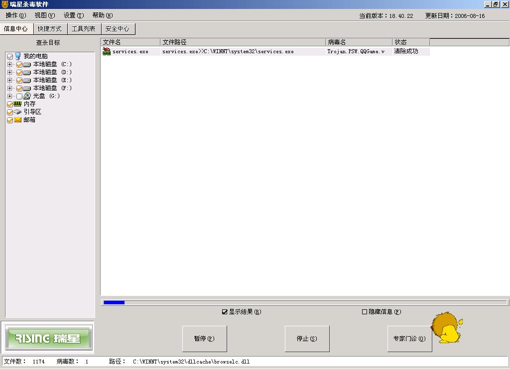 请看下图,每回开机,瑞星自动扫描,每次都能杀到如下图所示的病毒