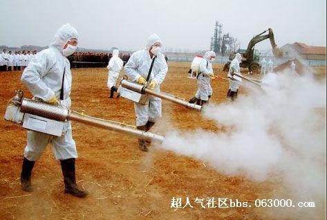 装车结束,消毒组对车体进行消毒,准备运送,掩埋