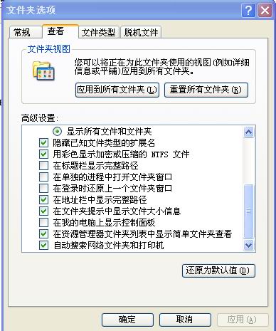 麻烦你能告诉我怎样清除:单击选取"显示隐藏文件或文件夹"清除"隐藏受保护的操作系统文件(推荐)"复选框。在提示确定更改时,单击“是”,清除“隐藏已知文件类型的扩展名。。。我付图: