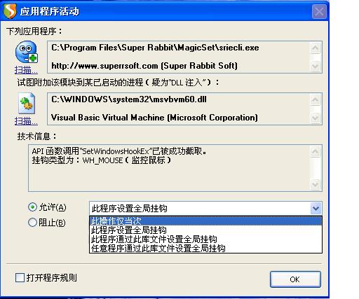 超级兔子不是病毒,我想运行它的时候以后不出这个,选哪个?选全局挂钩?