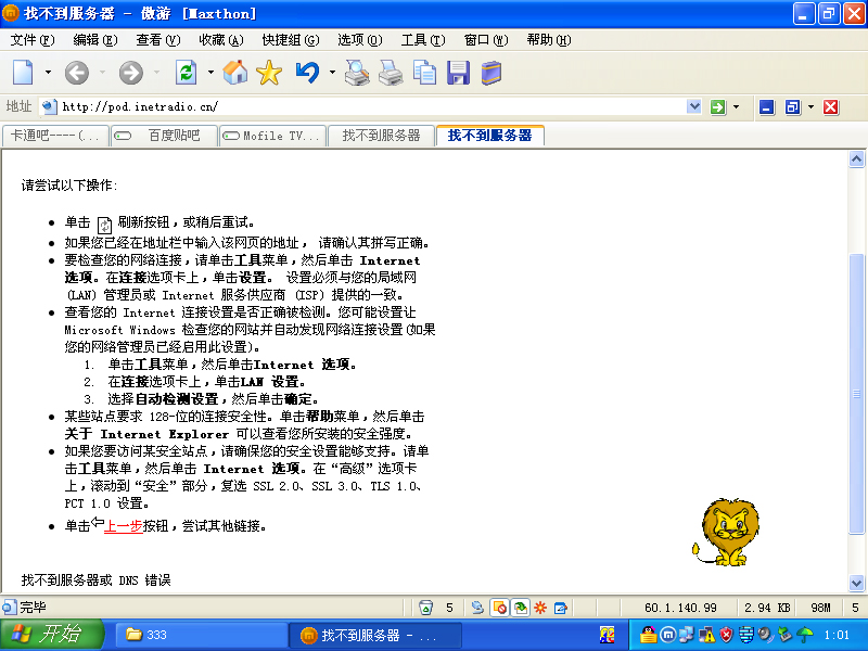 点击网页上的一些链接,弹出的网页全是"找不到服务器"~