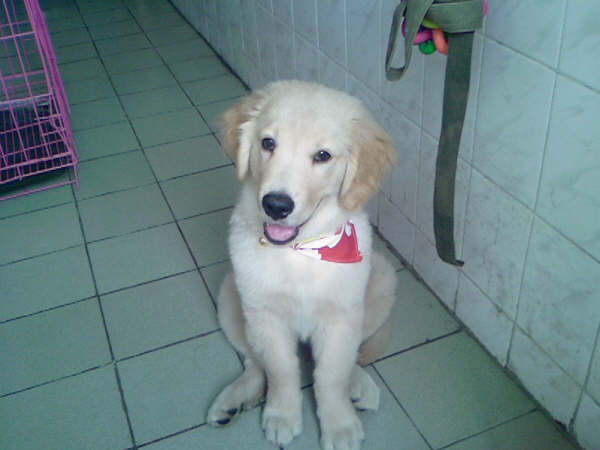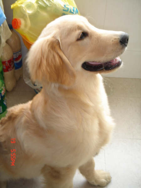 第一天回家留念,一点儿不认生,围着墙角转了不下10圈后,尿了。