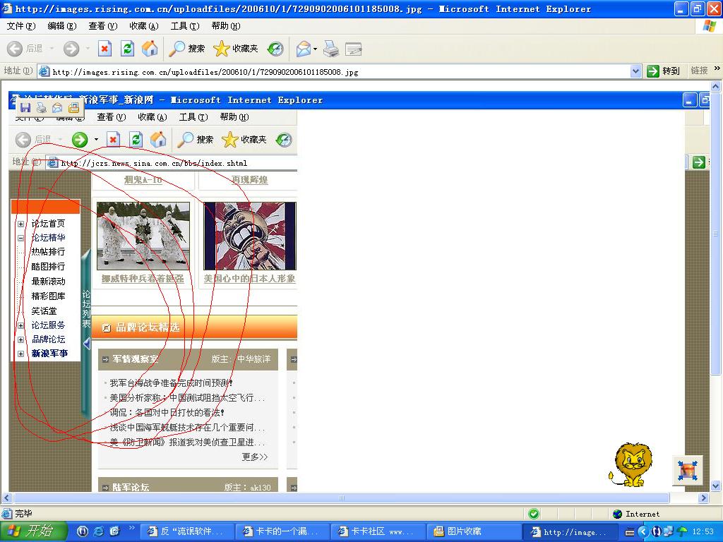 用卡卡的拦截浮动广告功能,如果浏览新浪论坛时,就会出现下面的图象: