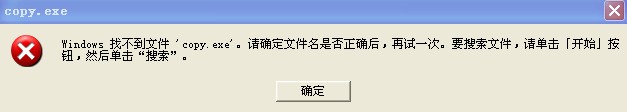 会出现: windows 找不到文件文件"copy.exe". 请确定文件名是否正确后在试一次.