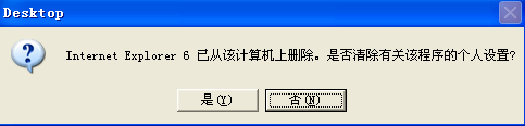 我的电脑前些天用超级免子修复了一下IE,可能被我一不小心删除了IE原始文件吧!现在一开机就提示IE6.0已经被删除,是否删除相关联文件!我现在只能每次开机小心地点击否,万一哪天一不小心点击是,我不得又重装IE?还有一个问题,打不开www.china.com中华网网页,只要打开这网页就弹出错误提示……内有SRENGLOG……