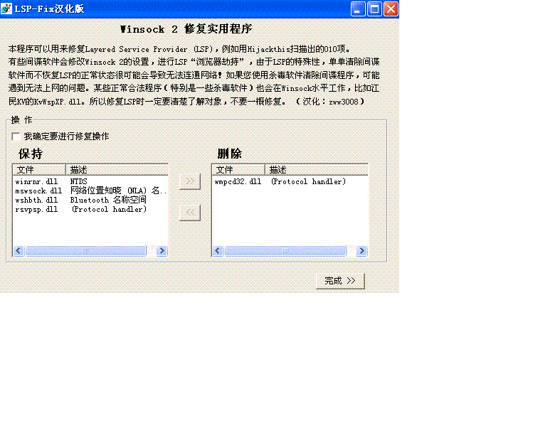 用HIJACKTHIS找到010  O10 - Broken Internet access because of LSP provider 'c:\windows\system32\gdiplus32.dll' missing