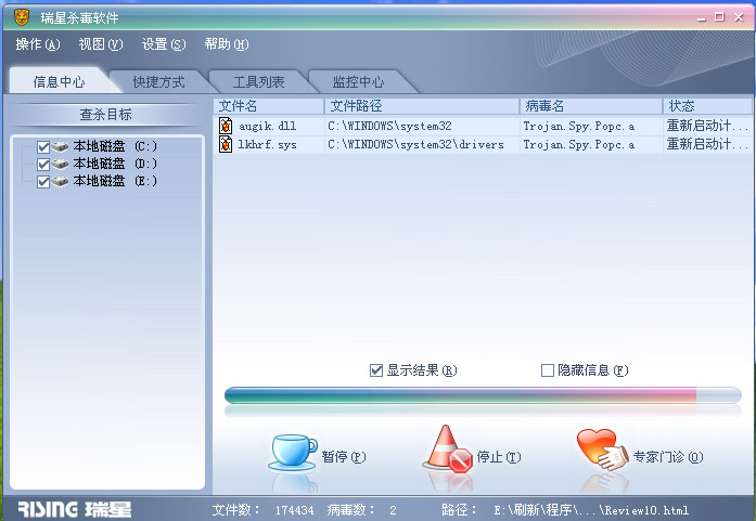 杀毒后截取的图片如下,升级完毕之后,进入安全模式里杀毒还是不成,都快半月了,急急急啊!