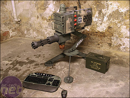 这款产品的主机是以一台浩鑫XPC为基础进行改造的,最终作品是EA射击游戏的最新大作《战地2142》中常见的机枪,大家不妨欣赏一下作品的亮点——上漆与优秀的金属质感。