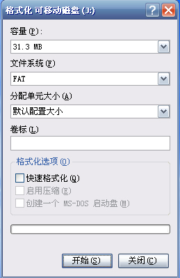 因为格式化选项只有"快速格式化(Q)","创建一个MS-DOS启动盘(M)"是灰色的不可选!!!
