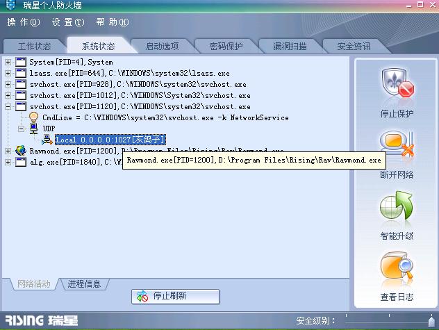 我两台电脑同样装了瑞星杀软\防火墙\卡卡助手。唯一不同的是一个是用05年序列号另一个用06年序列号升级 。。。。。。。。。