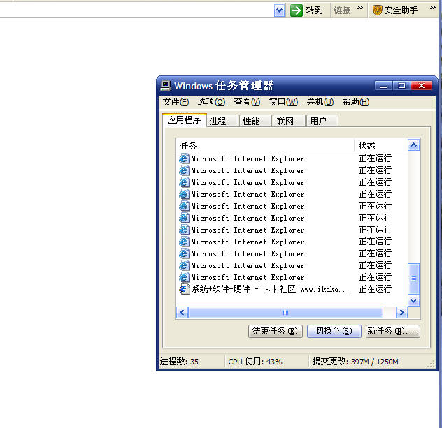 我家的IE6.0不知道怎么了,一旦打开就关不了了,你一点X 他就马上自动开很多个IE窗口,说"试图引用不存在的令牌".只有用任务管理器才能关掉. 或着 你点一个Q-zone,他会弹出两个窗口,然后CPU的运用率就成了100%.