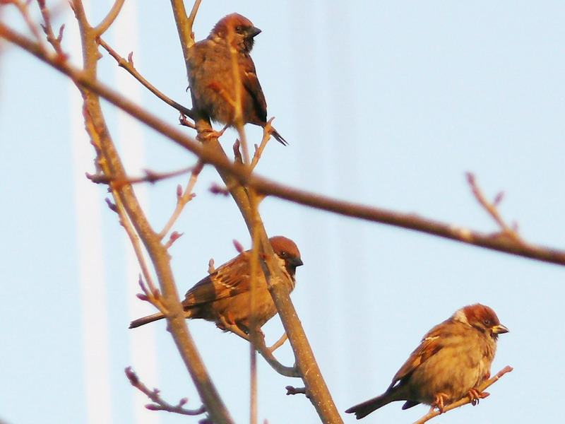 【laof的贴子】连日雨雪交加,气候阴冷。好不容易有个晴天,四兄弟跃上枝头,享受第一抹阳光。