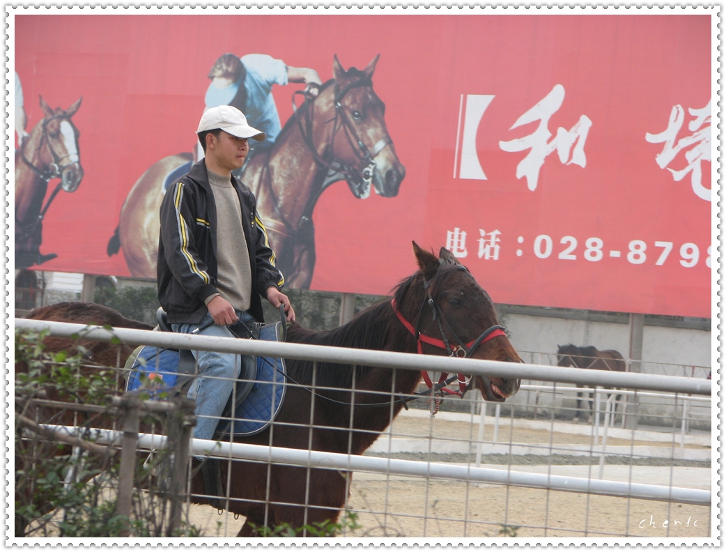 在成都近郊有个马术俱乐部,我没进去,只在门口拍了张片片,挺凑巧,真假马头排得一致。