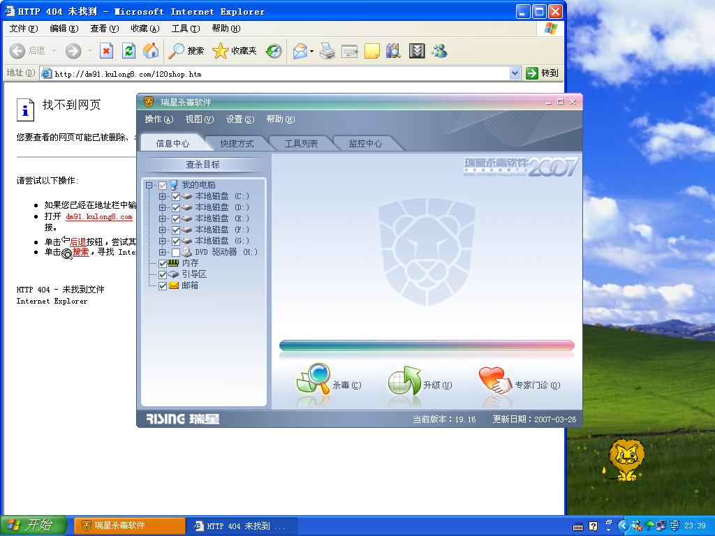 彻底卸载后,重新下载安装包重新安装问题已经解决了。但新的问题又出来了,就是点击瑞星杀毒软件图标,就弹出一个:http://dm91.kulong8.com网页。好像是什么网络医院,有问必答。见下图。再一次麻烦zgr稳得起斑竹了,谢谢!