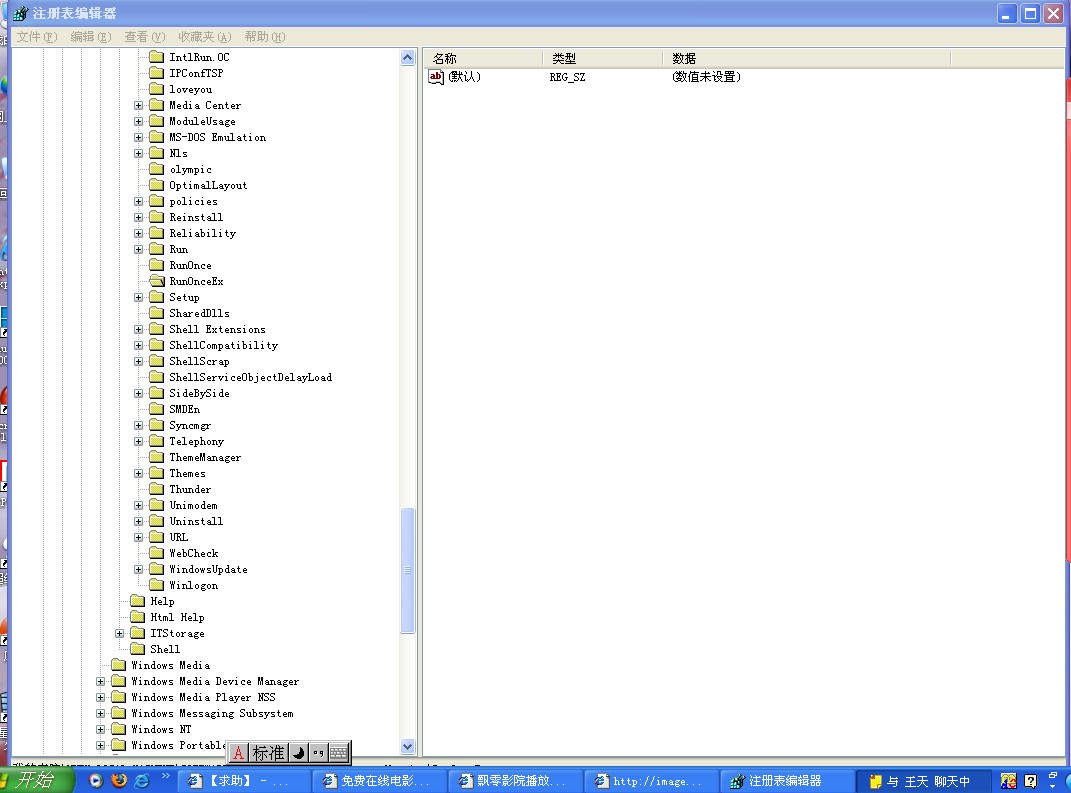谢谢,第一个问题解决了.第二个,我按阁下的指示打开了注册表,请帮我分析一下,该 如何做才能解决这个问题,有劳了!