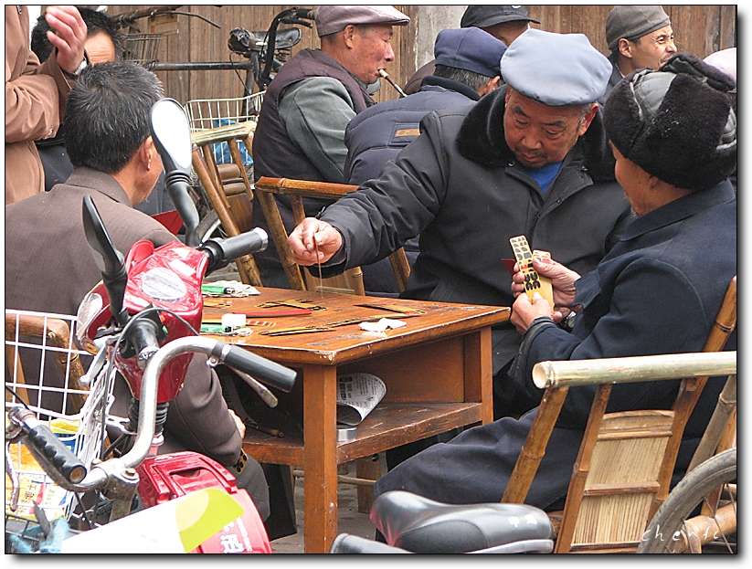 纸牌是四川农村历史悠久的一种消谴游戏,现在城市中已很难见到,它早已被麻将、扑克代替。前些时候去彭州军乐镇,偶然发现集市上有农民玩纸牌,便按动了快门。