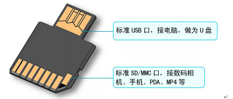 ☆ 通用存储卡是标准SD卡尺寸,所有支持SD/MMC设备(数码相机、手机、PDA…)均可使用,同时厚度仅2.1mm,是 最薄的钱包U盘