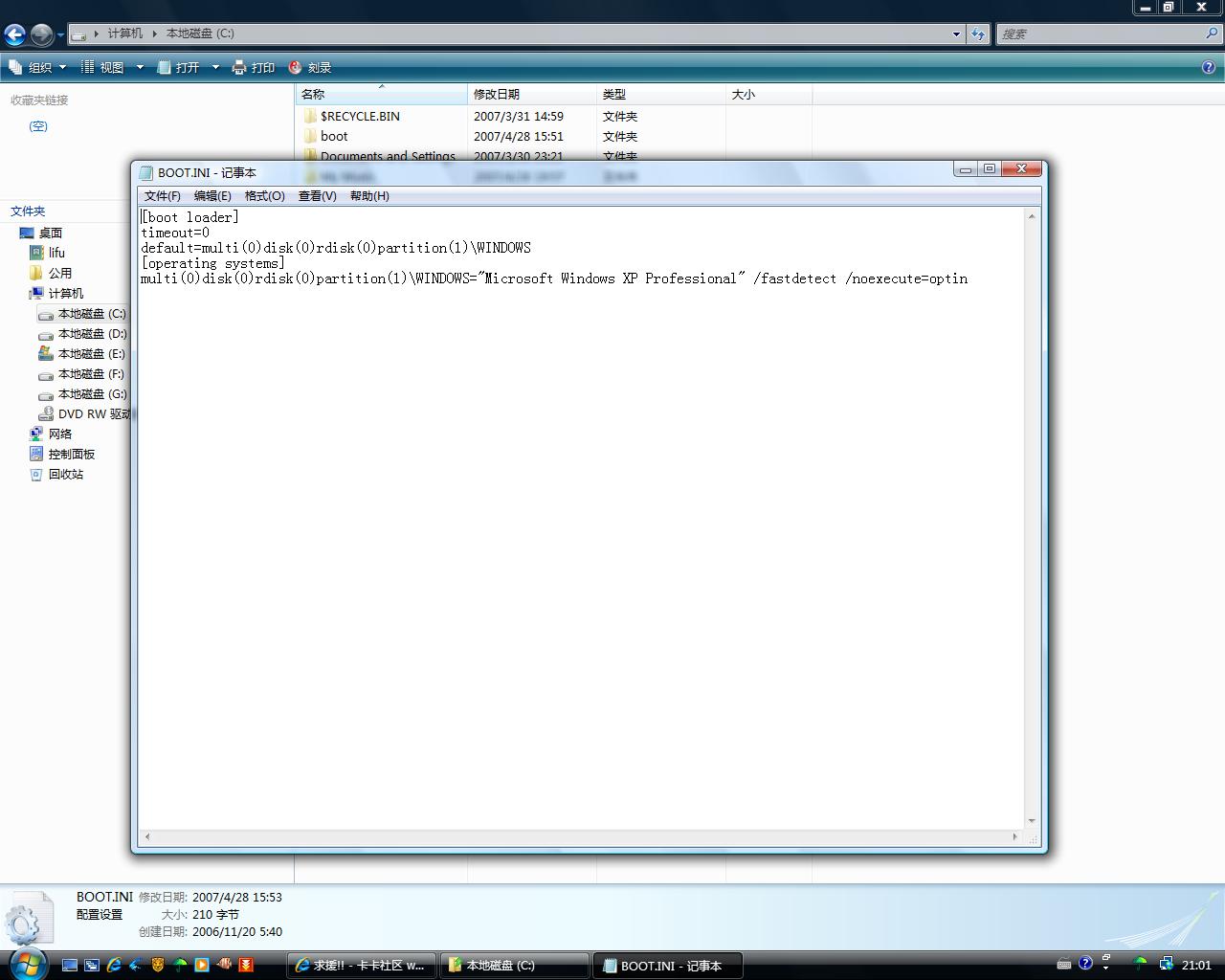 【回复“zgr稳得起”的帖子】BOOT.INI的内容在第3楼。