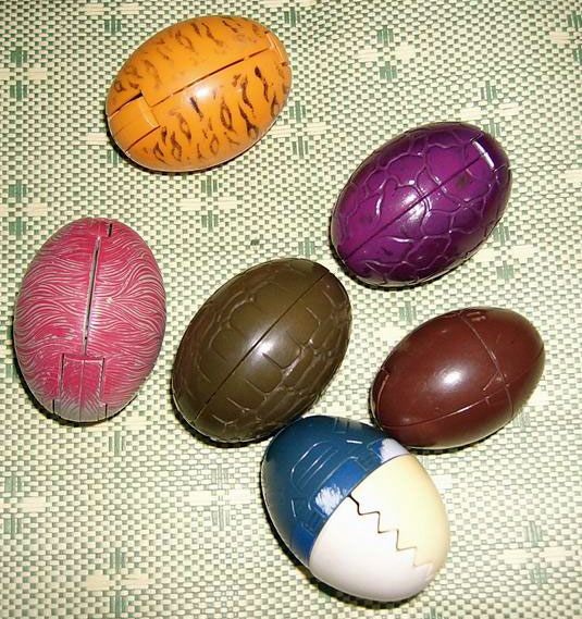 变形蛋,80年左右出生的人都应该知道的。记得当时的梦想就是拥有全套,拥有后何止只是高兴,简直就是要拿到班上炫耀一翻。现在看到收藏的变形蛋,哇,心头一热,真的好怀念那时候的日子……