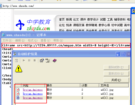 请问一下,这是什么病毒。我每次上网总是这样,我们整个局域网内的电脑只要是上网,都是这样,每次查看源代码也是出现那一行恶意代码,我重新分区后,也不能解决问题,有谁能告诉我,这是什么病毒,有没有专杀工具。谢谢,我的QQ:8757999