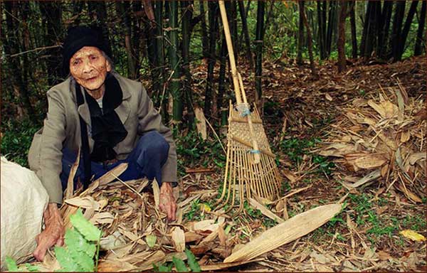 第一次看到老太太在竹林里捡柴的时候,我就怔住了,她很瘦、很虚弱,每捡一支干柴,每一次蹲站,仿佛都快支持不住了,仿佛都要倒下去了,虽然满地都是树叶,可她捡拾起来都要付出生命的最后力气。