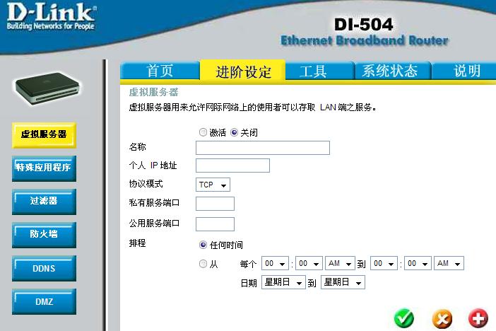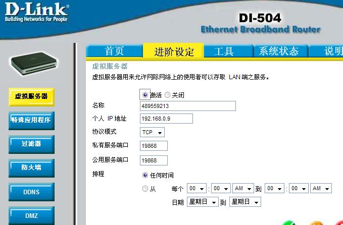 电信ADSL路由器上网,路由的型号是DI—504。请知道BT映射设置的朋友告诉一下,谢谢!
