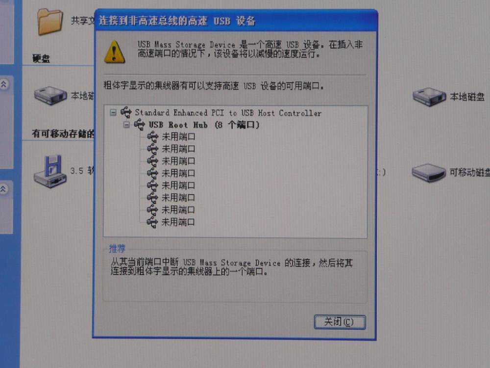 在下救助,当我插入新买的清华紫光U盘(2G)时,先后出现如下提示。在下不明白如何处理,于是只好按第二图的“关闭”之后继续使用。结果,往此U盘中“读”或“写”数据均“超、超超超超超超超超-----慢!!!”。请高手指点!!