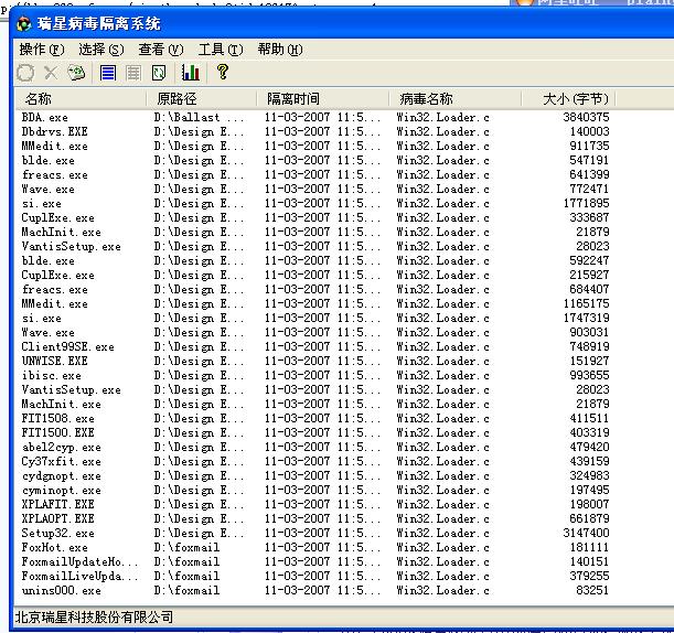 昨晚用了个橙色八月的专杀工具,瑞星可以启动了,但360之类的还不行.在安全模式下,检查出一种毒,专门感染EXE文件,重启后,瑞星报警没有杀干净.win32.loader.c