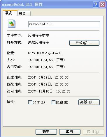 C:\WINDOWS\system32\xmenc9chd.dll的属性如下图: