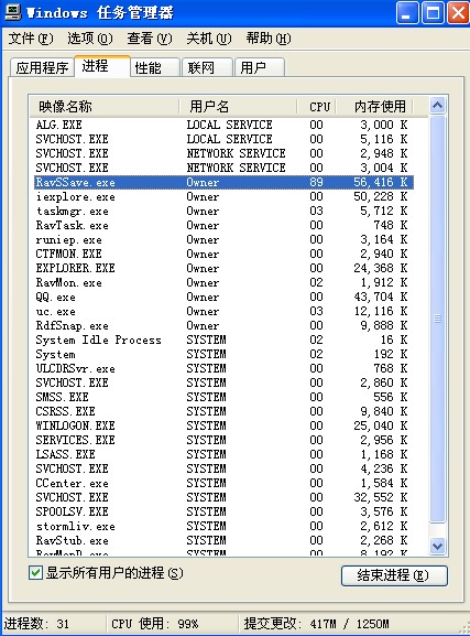 瑞星2008有一个进程是ravssave.exe,偶尔会出现这个进程,占用系统资源很多,高时能在90%左右。也不太清楚这个进程的作用是什么,正常吗?