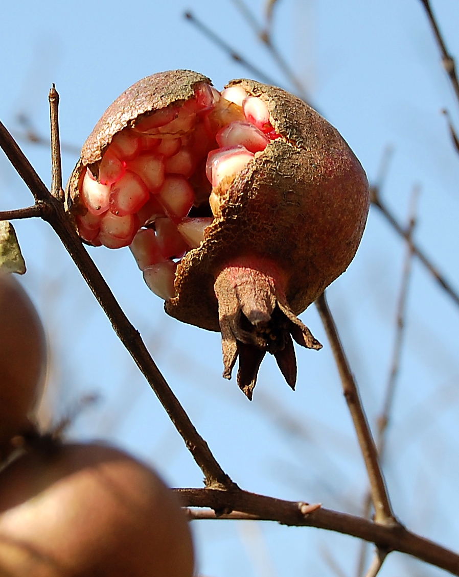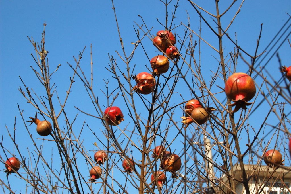 终于盼到了一个大晴天。在这样滴水成冰的日子,阳光真是太可贵了!更可贵的是,街头还有好多被霜打过之后、更加艳红的石榴。每天上下班都眼馋地看!不过,这是景观石榴,不能吃哦……