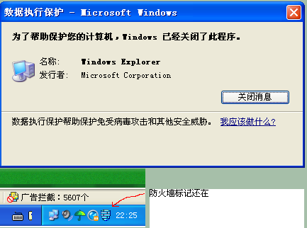 点击关闭浏览器后,瑞星防火墙的标记消失了(图002),但打开防火墙软件看其防护功能是开启的.