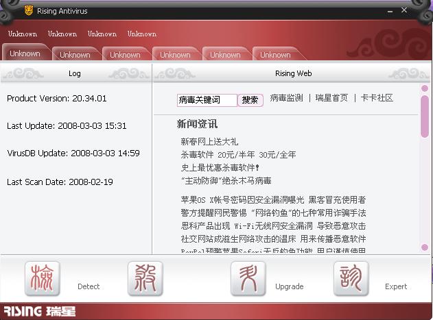 我的电脑突然重启.打开的时候瑞星就变成全英文的了,全部显示"UNKNOW",我可是花了200大样买的正版的,哪位高手帮个忙帮我解决下 我QQ237999548