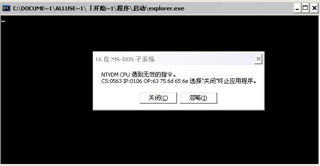 杀毒后重启开机后提示NTVDM CPU 遇到无效的指令