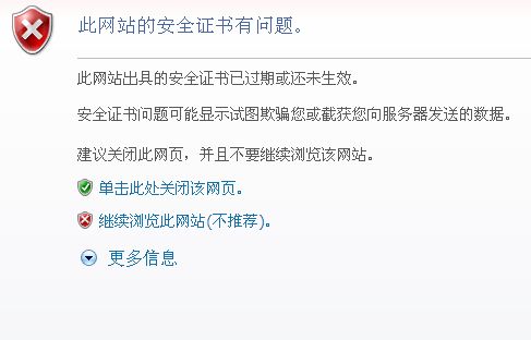 我进百度,然后登陆的时候提示我此网站安全证书有问题,具体见附件.MSN也上不了,密码是对的.还有PS的论坛:来福岛.也进不去.其他都是正常的.请大家一下忙,到底是怎么了.瑞星没查出病毒.我是07升级版的.