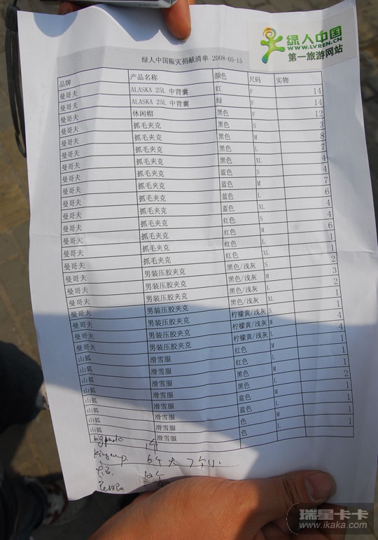 绿人中国捐助灾区物品清单