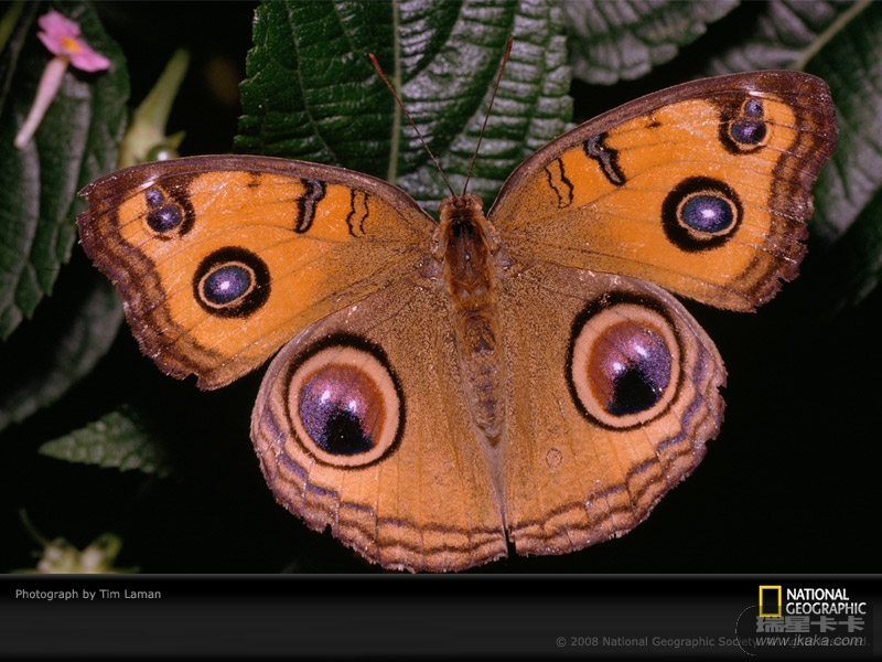 The peacock pansy butterfly (Junionia almana) sports striking eyespots and purple patterns.
