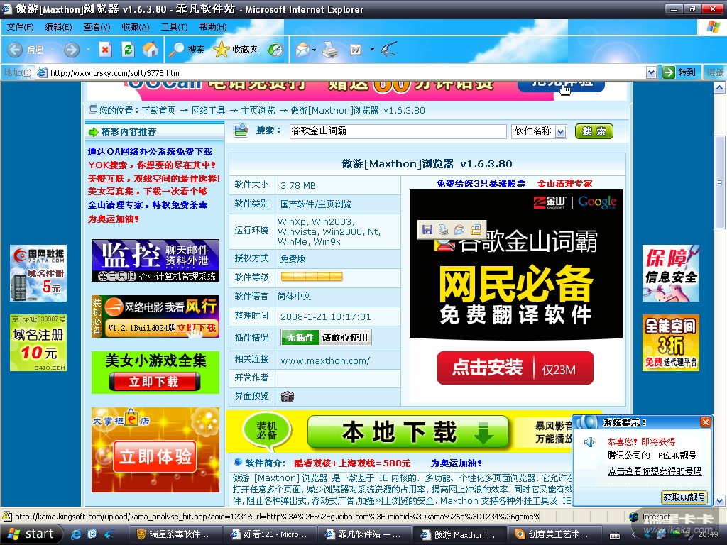 用IE或者傲游上网时,在网页的右下角经常会弹出一个QQ系统的消息,或者是网页上图片广告的链接中会出现,但系统里根本就没有装QQ,是一个钓鱼网站的广告,一点它就会跳到