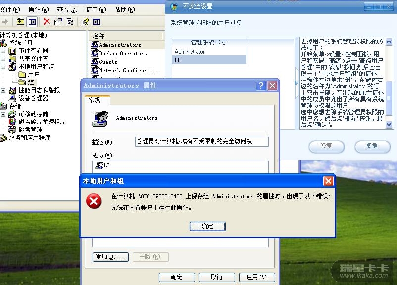 详细描述:按照卡卡的方法,我删除Administrators,但却无法操作。请问,怎么回事?