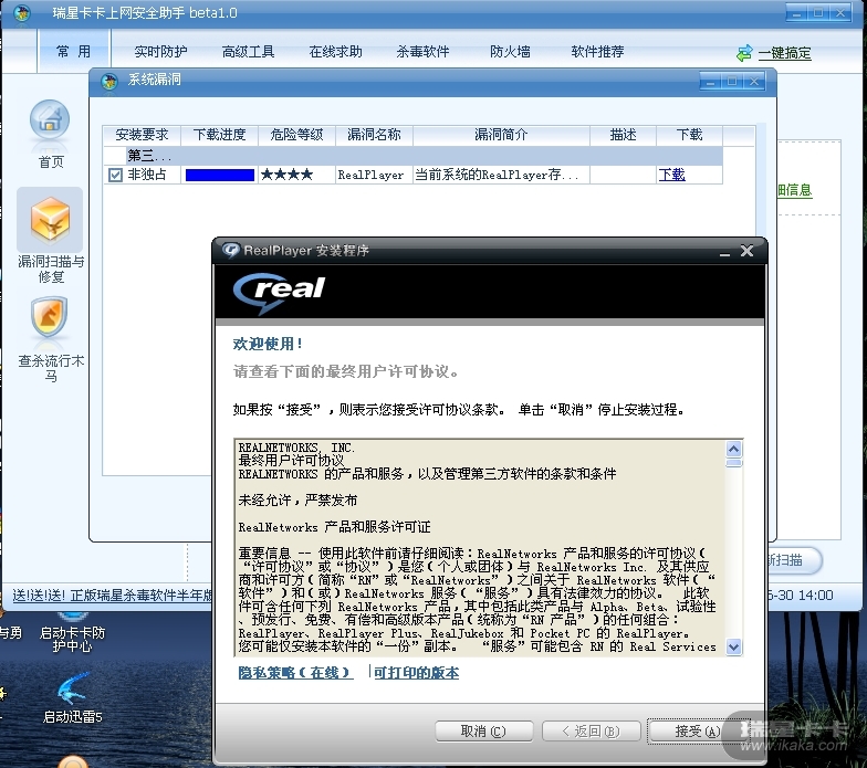 http://bbs.ikaka.com/showtopic-8518193.aspxRisingCSC 指点,需要安装补丁,现在有个问题,下载的真的是补丁?real很流氓?