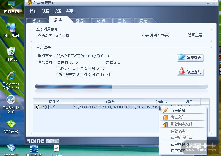 我是玩游戏,重起后不点进游戏查杀时是查杀不到有病毒的,一点开始游戏就发现病毒,然后再杀毒就有上面所说的那个病毒。下面是一进游戏就发现的病毒。