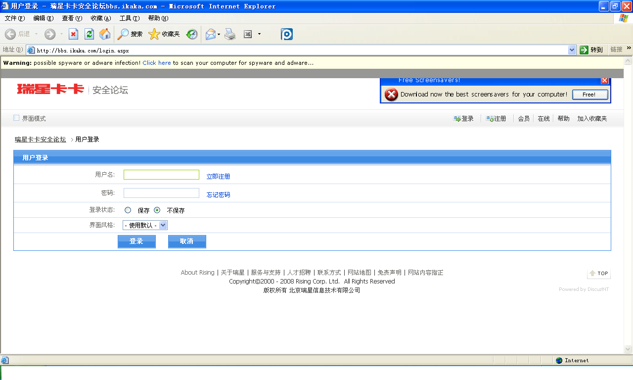 最近一打开网页,网页中的广告就自动换成了外国的广告(能看出来原来的广告马上换成外国的广告)而且,有时候开了几个网页,再点其中一个网页得链接时,网页就变成下图所示(在浏览瑞星网站时,点了一个链接)