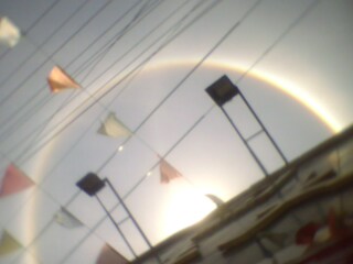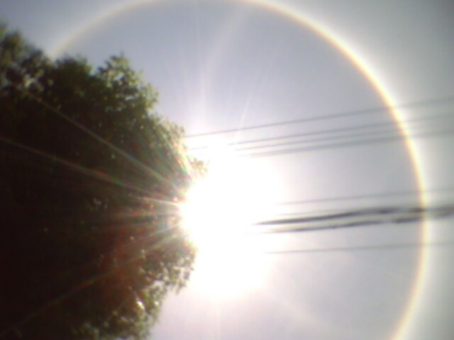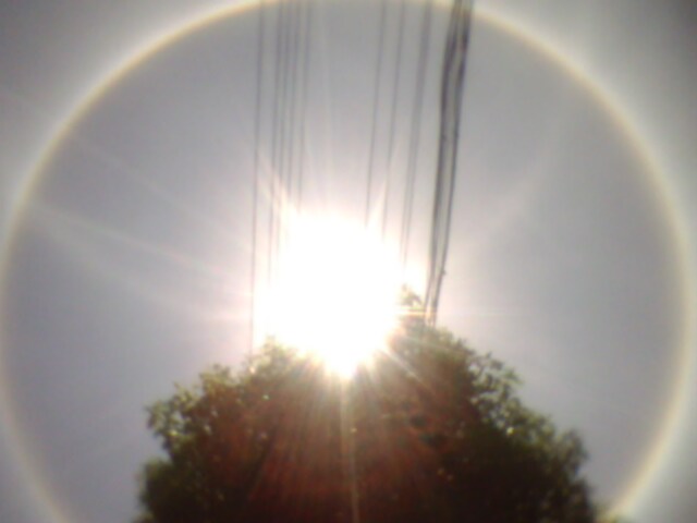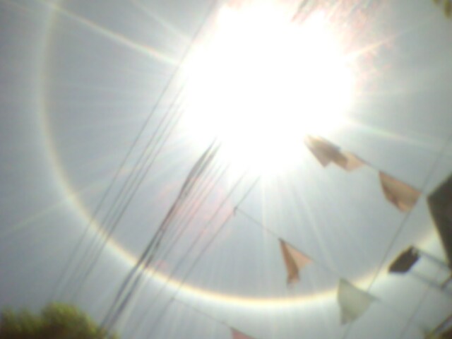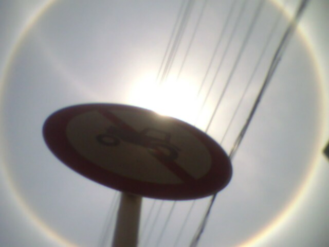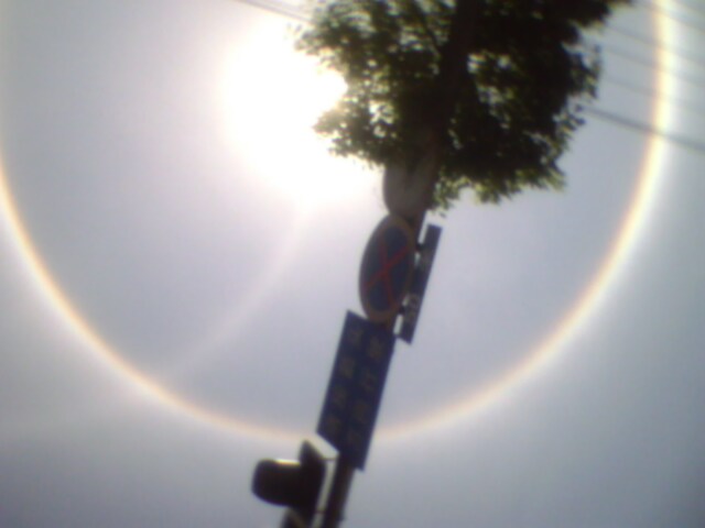 临近中午,听到同事们说门外有日晕,,没带数码,只能用手机凑和啦,,前几日的日食看不到。。这回日晕也让偶过把瘾,HOHO。