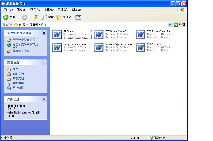 多谢了,你的可以用(很漂亮,收藏了),但不知为什么我的一点就开Word(不管是.exe还是.scr),