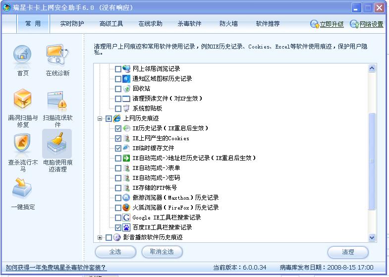 我的卡卡6.0痕迹清理功能用不了,点了清理按键之后,卡卡6.0就会卡死,接着就会提示"没有响应".