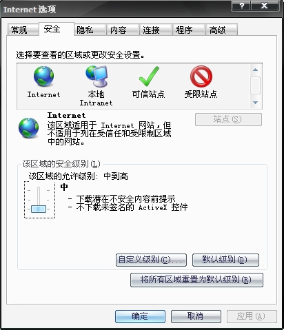 无效,我已经改中了,默认的还是中高级别的,另外,我的是IE7不是IE6